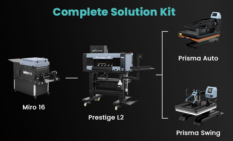 Przemysłowa ale zarazem kompaktowa, drukarka o długości jedynie 116 cm idealnie dopasowana do wymagań firm dysponujących ograniczoną przestrzenią ale wymagających wysokiej jakości i wydajności pracy. Model L2 posiada dwie przemysłowe głowice I3200, które gwarantują wysoką jakość, stabilność pracy i wysoką prędkość druku. Drukarka DTF L2 o szerokości folii 45cm to optymalne rozwiązanie dla wszystkich drukarni tekstylnych, ponieważ umożliwia wykonanie niemal każdego zlecenia DTF przy niewielkich wymiarach maszyny. Drukarkę polecamy jako przemysłową drukarkę DTF dla firm z mniejszymi potrzebami produkcyjnymi albo w przypadku braku miejsca na zainstalowanie drukarki o szerokości 60cm. Do drukarki DTF Prestige L2 zaprojektowaliśmy optymalną proszkarkę Miro 16, która również jest kompaktowa i idealnie dopasowana pod względem technicznym do drukarki L2. Zestaw drukarka DTF Prestige L2 oraz proszkarka Miro 16 stanowi optymalny kompaktowy zastaw DTF za równo pod względem inwestycyjnym jak i produkcyjnym.